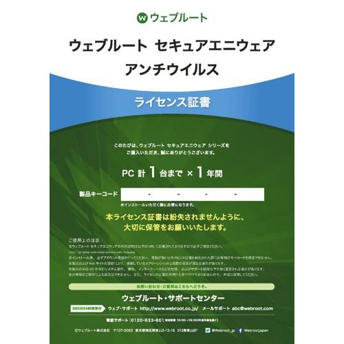 Amazon ウェブルート Webroot セキュエニウェア Secureanywhere アンチウイルス Antivirus 1年間 Pc1台まで ライセンス証書 ダウンロード版 ウイルス対策 セキュリティ ソフトウェア